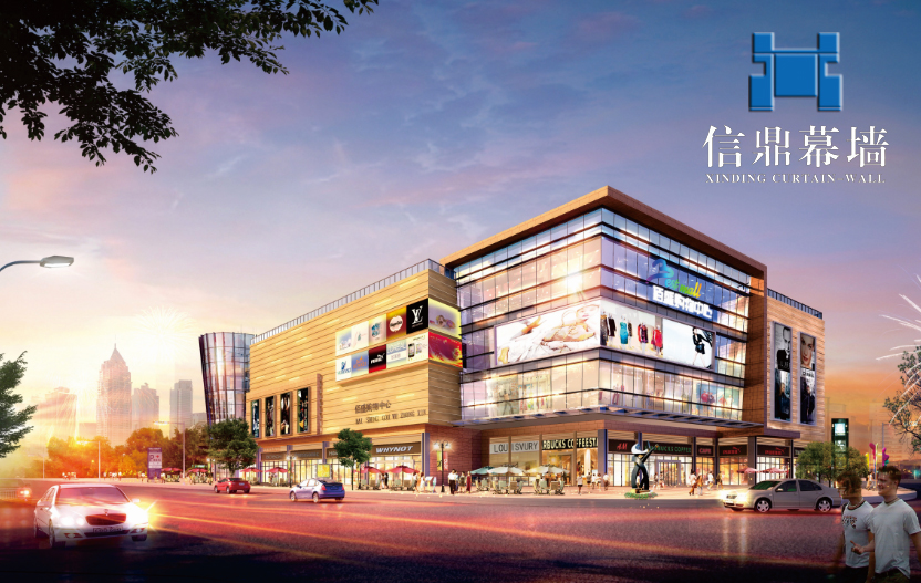 上海震旦大厦的19层到33层玻璃幕墙上装有LED多媒体系统,白天是金色外观,晚上为各种动画或广告,临江而立,亮丽耀眼是多媒体动态幕墙。