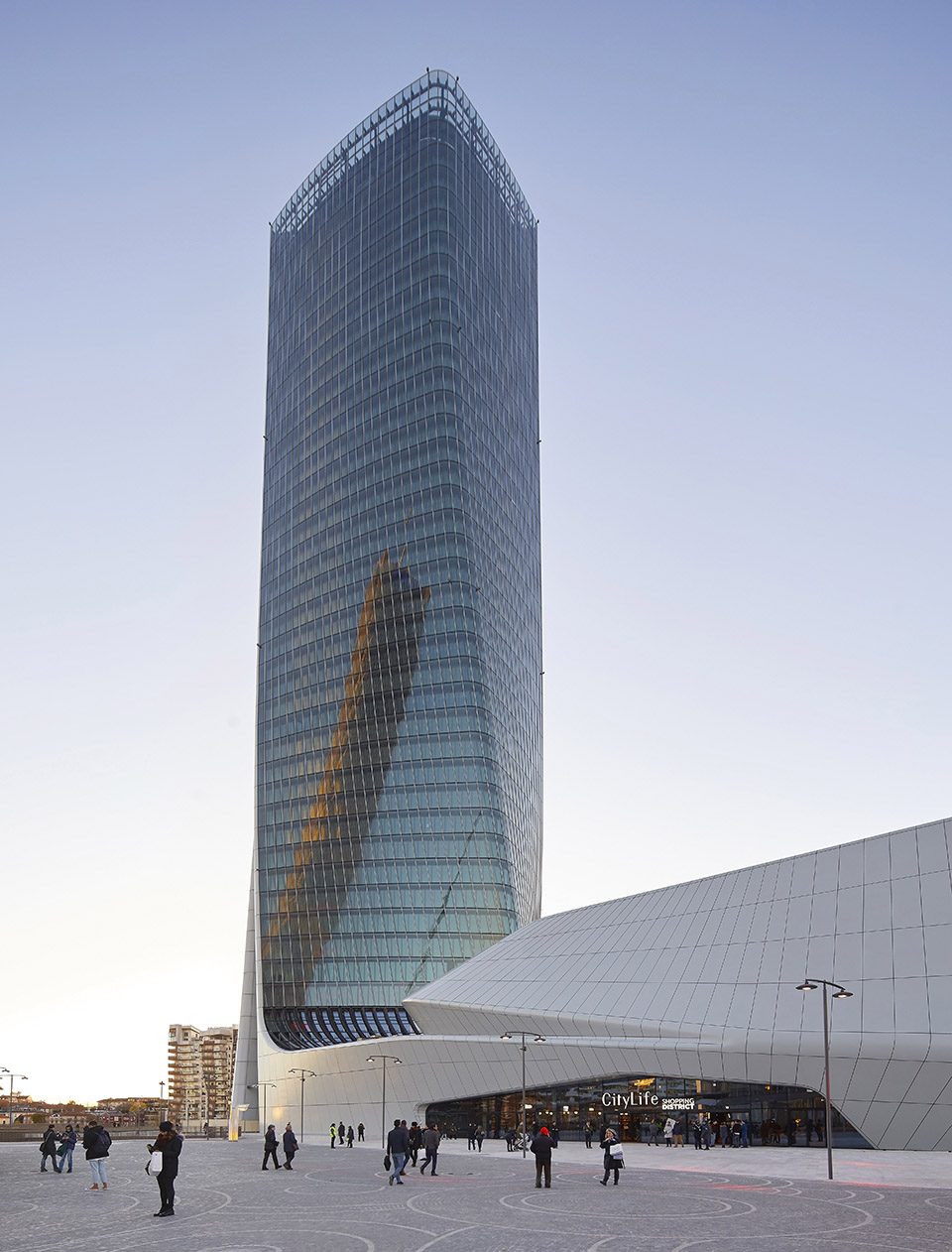 商业区内的建筑幕墙遵循几何定位,该大厦外形也逐渐扭转,并最终面向城市中心的米兰大教堂。幕墙玻璃大厦为米兰一家保险公司所有,至2018年正式投入使用之际,这里将迎来3000员工。占地90英亩的城市再开发项目,开启了老式米兰的全年开放贸易模式。随着户外公共花园的建立,以及城市最大步行街区规划,该商业街区将成为米兰近120年来最大的公共活动社区。