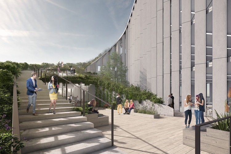 事实,“建筑屋顶作为建筑的第五个立面”,很重要,还可以向下延伸形成一个类似花园的露台,并通过西侧楼梯连接,作为消防通道和大众公园使用,信鼎幕墙,打造美好生活。