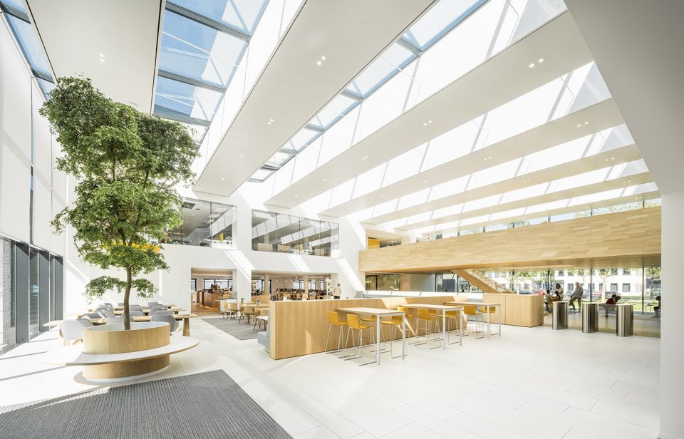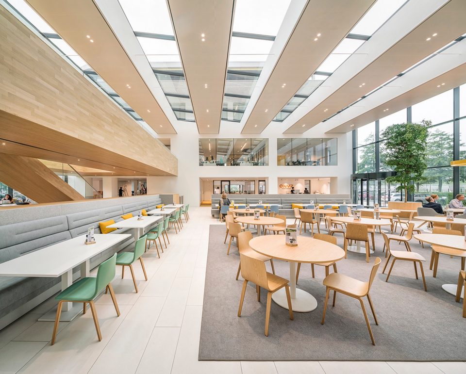 在国内很多的保险公司总部大楼都是成为城市中的地标性建筑,如深圳平安大厦等。这个是位于荷兰的一家保险公司总部大楼,进入办公室的大厅,来访者便可以一览从学院派到独立区域的,各式各样的办公环境。设计师将两栋独立的建筑通过一个视野开阔,阳光充足的玻璃中庭相连。该连通区域包括建筑的主入口,休憩空间,餐厅及两个大型会议室。