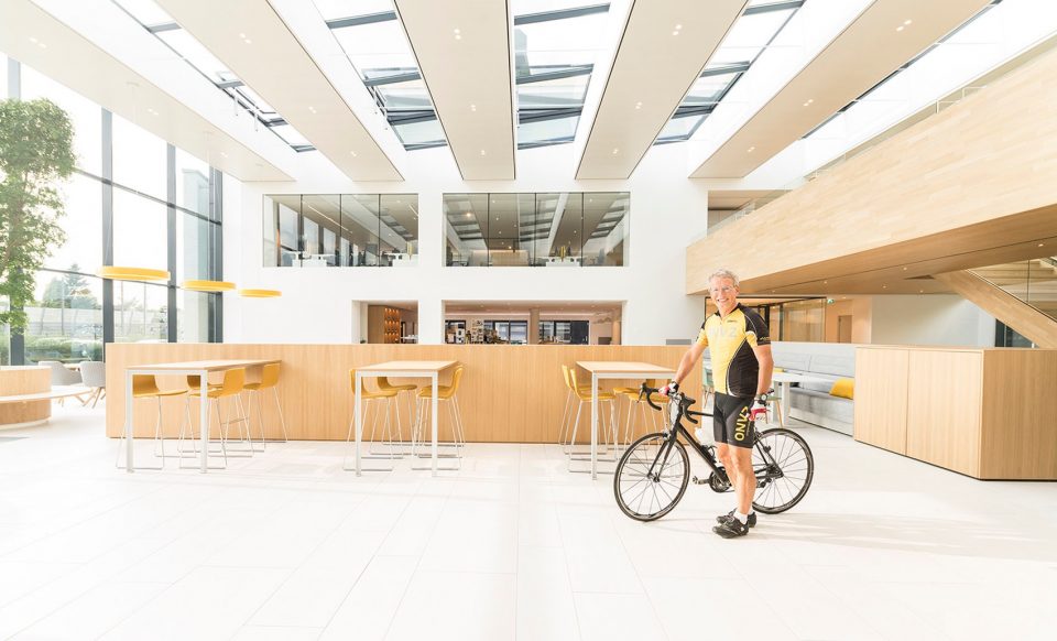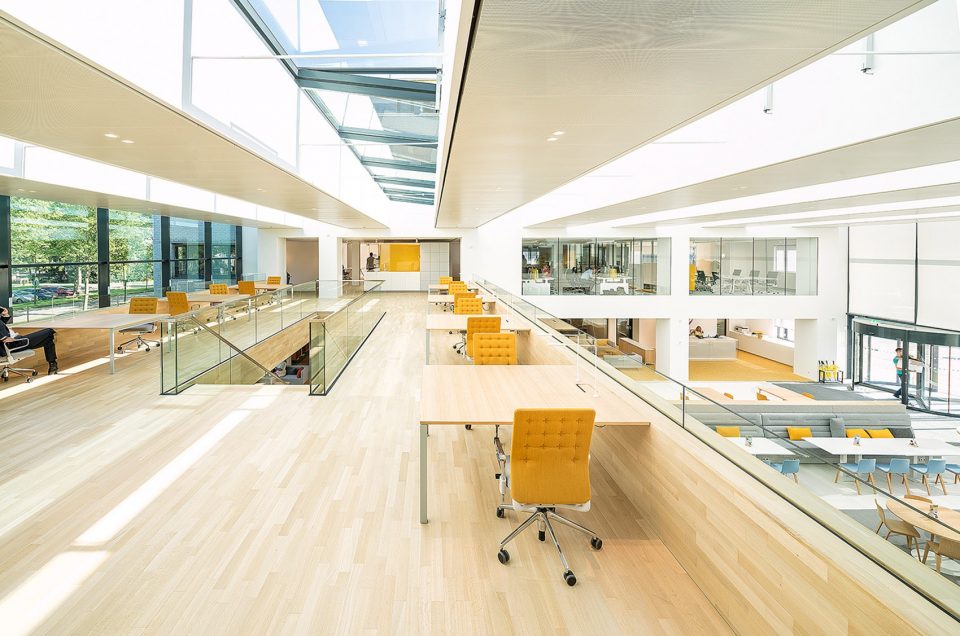与打造健康活力生活环境的理念一致,与此同时,他们还为此设计了独特的座椅,给予员工更多的休闲及放松空间,强调了以健康为主旨,以充满活力的办公环境为主要目的室内设计。晴朗的天气里,一些延伸到室外的坐席拉近了人与自然环境的距离。空间设计所采用的材料和色调共同营造了一个舒适宜人的健康环境。