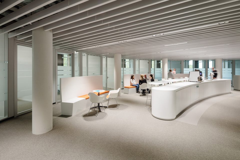 位于建筑一层的市民服务中心是该项目的核心部分,其中包括会议室以及职员餐厅。上方楼层包含单人和双人办公室,以及宽敞的小组办公室,开敞式的桌面布局为来自不同部门的职员提供了办公空间。玻璃隔墙系统使办公室的平面布局变得灵活且具有可逆性。市政厅的内部路径被设计得透明而开放,令使用者能够容易地辨认方向;一些特别设计的空间则带来更多互动和交流的机会。