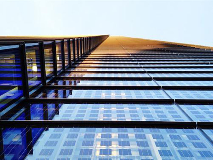 (1)双层玻璃幕墙。双层玻璃幕墙是公共建筑幕墙设计中常用到的围护结构类型之一,它能有效起到隔音降噪的作用,对于办公环境要求较高的商业建筑有良好效果。同时,这种结构还能够提升室内空气质量和环境的舒适度,尤其是在冬季冷处理和夏季隔热处理方面有明显优势,从而有效提高建筑能源的利用效率。(2)光电幕墙。光电幕墙结构的原理是通过将太阳能转换模板密封在双层钢化玻璃中,从而将太阳能转换为电能,实现对太阳能的高效利用。光电具备有装饰、隔热、发电等多种功能,全面满足了现代化公共建筑幕墙结构对于智能化以及节能环保的需求。在具体的设计过程中,需要综合考虑到模板、电池、导线以及变压器等因素,并且充分利用好幕墙骨料的空腔部分,可以将线路部分隐藏其中,满足建筑外立面的美观需求。另外,光电幕墙可以通过加装光电模板的形式来节约传统建筑材料,提高太阳能的吸收效率,并且避免墙面和屋顶温度过高,降低建筑内部的空调负荷与能耗。