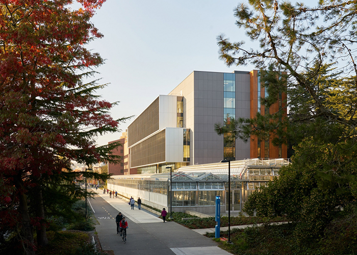 建成后的生命科学楼率先运用创新太阳能技术,在室外安装了同类首批竖向玻璃肋板太阳能光伏装置,预计由此生成的电能足以满足1150平方米以上办公场所的全年照明需求。其他可持续特征包括为自然通风制冷提供可开启窗、冷梁空调、利用水回收系统进行温室灌溉、辐射地板及屋顶太阳能板等。生物学运用整合化方式让人们来了解自然界。深受这种理念的启发,设计将多种自然元素与创新永续的设计特征相结合,并通过自然元素构建视觉焦点。