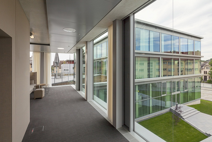 幕墙的外立面使用电脑控制的遮阳板,电脑控制的遮阳体系覆盖六个玻璃立方体的外表面。程序算法根据一年、一天内的时间和阳光的强度进一步控制应该降低哪一部分的遮阳程度。员工也可以手动调节这些遮阳板,增强的建筑人性化。