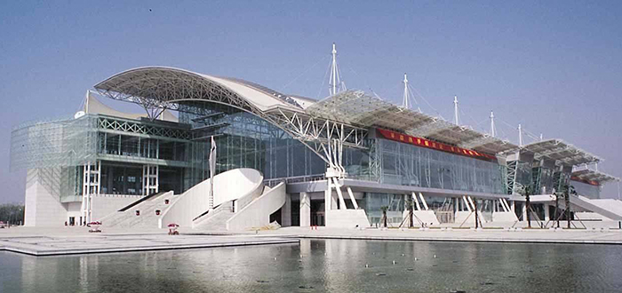 南京国际展览中心位于南京市区东北部,东接紫金山,西靠玄武湖,是集展览、交会议功能为一体的南京市政府大型会议中心,该馆长约250m,宽约159m,高约46m,总建筑面积8900m2,共有6个展厅,2068个标准(3m×3m)展位。